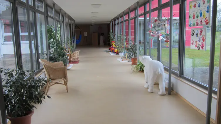 In dem hellen und freundlichen Gebäude können bis zu 112 Kinder im Alter von einem bis sechs Jahren betreut werden. Seit September 2018 gibt es eine Krippengruppe für Kinder ab einem Jahr. Die Kinder werden in 2 altersübergreifenden - und zwei Kitagruppen sowie einer Krippengruppe betreut. Es stehen Integrationsplätze zur Verfügung.